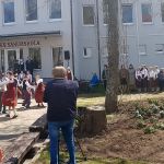 Visa skolas saime, skolēni, skolotāji, skolēnu vecāki, skolas darbinieki apskāva Latviju, Latgali, Rēzekni, skolas apkārtni ar sarkanbaltsarkaniem rožu ziediem.