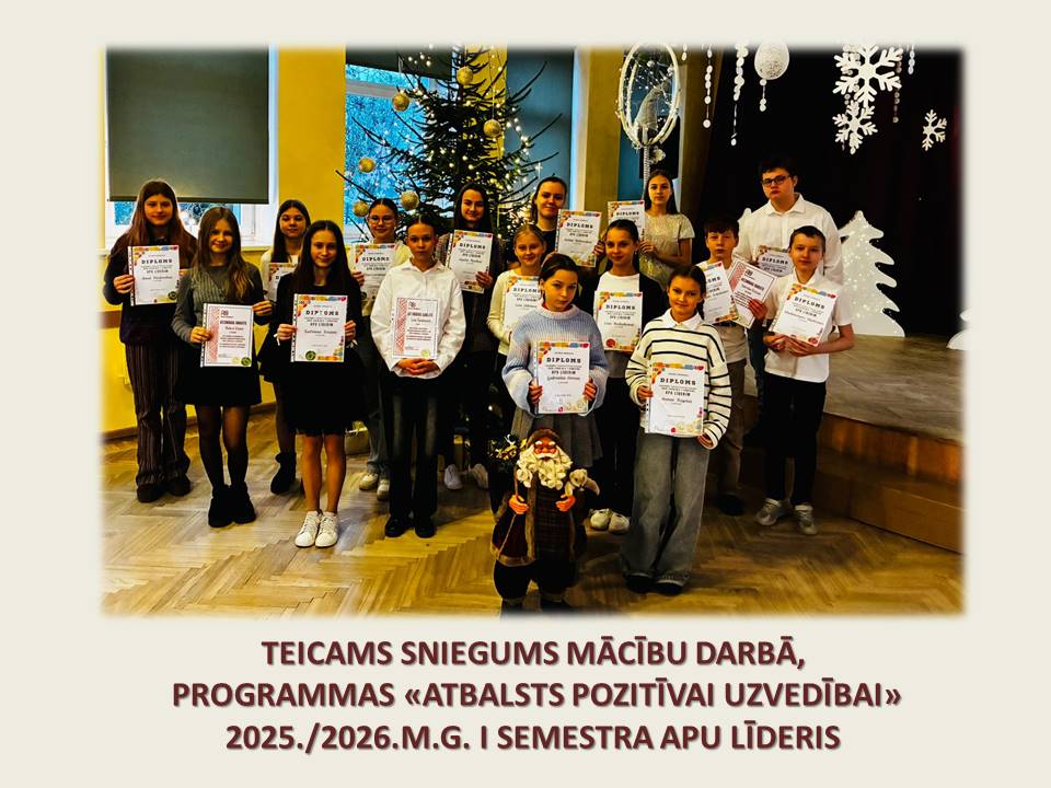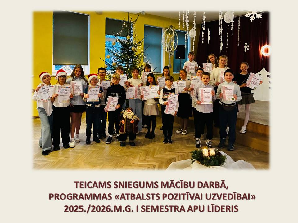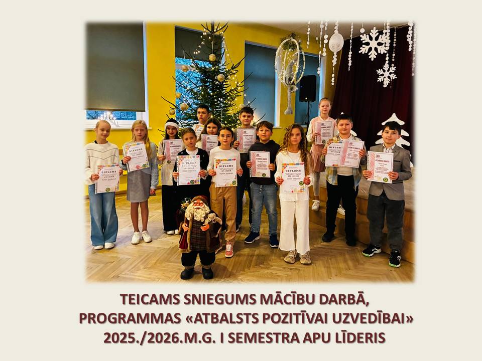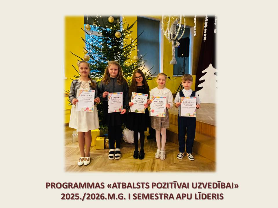 - 1.-6.klašu programmas “Atbalsts pozitīvai uzvedībai” līderi 1.semestrī.