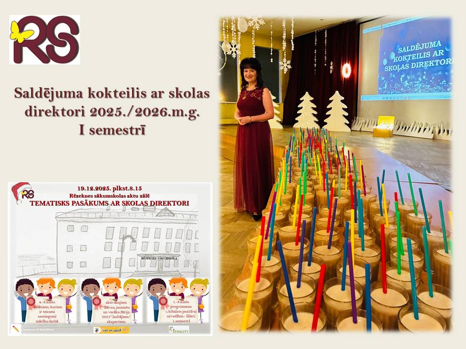 Rēzeknes sākumskolas aktu zālē 19.decembrī notika tematisks pasākums “Saldējuma kokteilis ar skolas direktori”:
